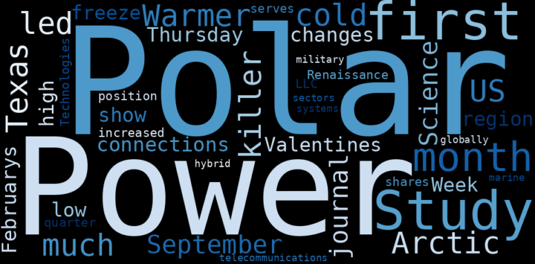 The game is changing. There is a new strategy to evaluate Polar Power fundamental value, possible risks and most salient advantages. Investors have traditionally relied in reading large amounts of text to evaluate the fundamental value of a stock or company. However, the development of Artificial Intelligence (AI) tools is modifying the way investments are evaluated in markets. Today, machine learning, natural language processing and bigdata allow making this process automatic, reducing large amounts of text to the elements that have a higher activation in a neural network. We programmed an artificial intelligence that reads the whole internet and the uses natural language processing and vectorizers to summarize the information. Usually, the AI reads several hundred pages and summarize it to a short document. This document presents our results. We found that the most common words in the internet about Polar Power are: Polar, Power, Study, first, Warmer, Arctic, lead, …