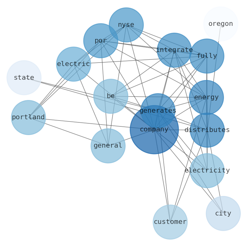 This document will help you to evaluate Portland General Electric Company without reading an infinite amount of sources. Relying only on stock quotes or prices to make investment decisions is a mistake. Analyzing and observing stock charts, highs and lows and other numerical data does not allow to evaluate the real value of a company. Stock quotes and prices are the result of underlying characteristics of a company and of events and news happening around them. For this reason, investing must be based on information, not numbers. As a solution, we programmed an artificial intelligence that reads the whole internet and the uses natural language processing and vectorizers to summarize the information. Usually, the AI reads several hundred pages and summarize it to a short document. This document presents our results. We found that the most common words in the internet about Portland General Electric Company are: Portland, General, Electric, …