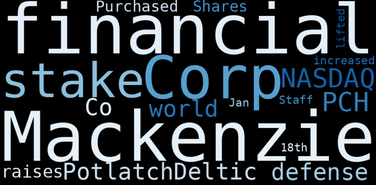 The game is changing. There is a new strategy to evaluate PotlatchDeltic fundamental value, possible risks and most salient advantages. Investors have traditionally relied in reading large amounts of text to evaluate the fundamental value of a stock or company. However, the development of Artificial Intelligence (AI) tools is modifying the way investments are evaluated in markets. Today, machine learning, natural language processing and bigdata allow making this process automatic, reducing large amounts of text to the elements that have a higher activation in a neural network. We programmed an artificial intelligence that reads the whole internet and the uses natural language processing and vectorizers to summarize the information. Usually, the AI reads several hundred pages and summarize it to a short document. This document presents our results. We found that the most common words in the internet about PotlatchDeltic are: Mackenzie, Corp, stake, financial, Financial, PotlatchDeltic, Co, and the …