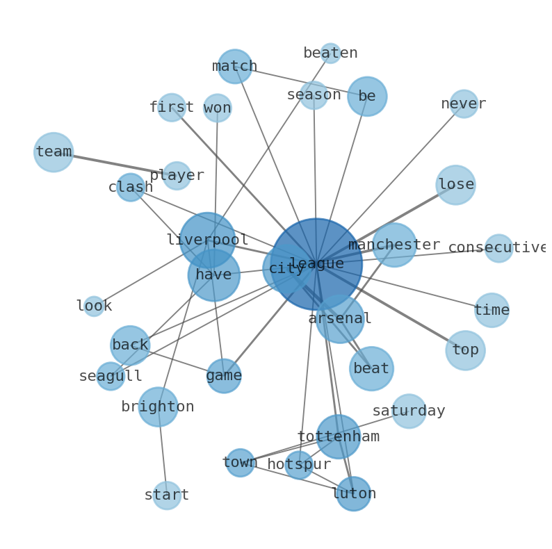 This document will help you to evaluate Premier without reading an infinite amount of sources. Relying only on stock quotes or prices to make investment decisions is a mistake. Analyzing and observing stock charts, highs and lows and other numerical data does not allow to evaluate the real value of a company. Stock quotes and prices are the result of underlying characteristics of a company and of events and news happening around them. For this reason, investing must be based on information, not numbers. As a solution, we programmed an artificial intelligence that reads the whole internet and the uses natural language processing and vectorizers to summarize the information. Usually, the AI reads several hundred pages and summarize it to a short document. This document presents our results. We found that the most common words in the internet about Premier are: Premier, League, Liverpool, beat, Arsenal, City, Tottenham, and the …