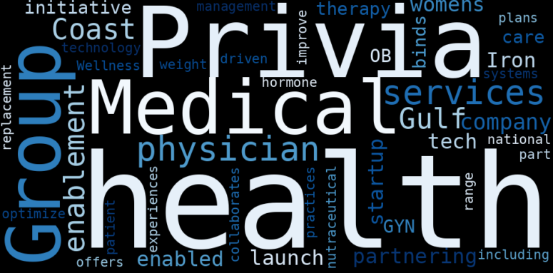 The game is changing. There is a new strategy to evaluate Privia Health Group fundamental value, possible risks and most salient advantages. Investors have traditionally relied in reading large amounts of text to evaluate the fundamental value of a stock or company. However, the development of Artificial Intelligence (AI) tools is modifying the way investments are evaluated in markets. Today, machine learning, natural language processing and bigdata allow making this process automatic, reducing large amounts of text to the elements that have a higher activation in a neural network. We programmed an artificial intelligence that reads the whole internet and the uses natural language processing and vectorizers to summarize the information. Usually, the AI reads several hundred pages and summarize it to a short document. This document presents our results. We found that the most common words in the internet about Privia Health Group are: health, Privia, Health, physician, service, …