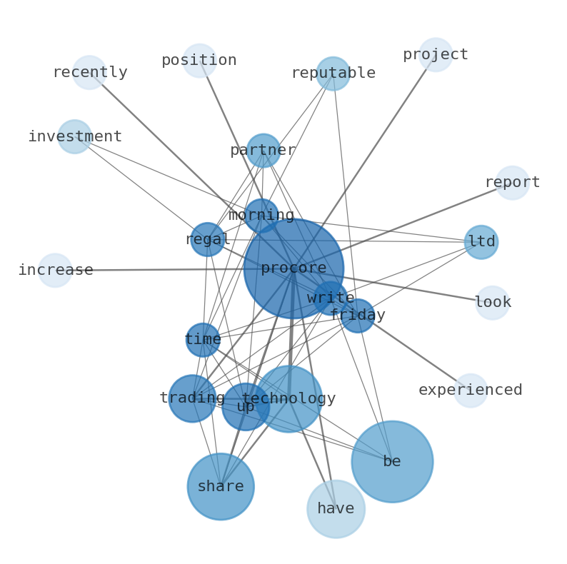 This document will help you to evaluate Procore Technologies without reading an infinite amount of sources. Relying only on stock quotes or prices to make investment decisions is a mistake. Analyzing and observing stock charts, highs and lows and other numerical data does not allow to evaluate the real value of a company. Stock quotes and prices are the result of underlying characteristics of a company and of events and news happening around them. For this reason, investing must be based on information, not numbers. As a solution, we programmed an artificial intelligence that reads the whole internet and the uses natural language processing and vectorizers to summarize the information. Usually, the AI reads several hundred pages and summarize it to a short document. This document presents our results. We found that the most common words in the internet about Procore Technologies are: Procore, Technologies, share, trade, rating, strong, company, …