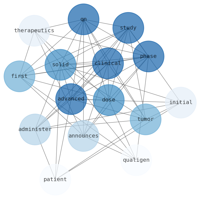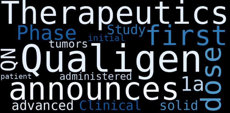 This document will help you to evaluate Qualigen Therapeutics without reading an infinite amount of sources. Relying only on stock quotes or prices to make investment decisions is a mistake. Analyzing and observing stock charts, highs and lows and other numerical data does not allow to evaluate the real value of a company. Stock quotes and prices are the result of underlying characteristics of a company and of events and news happening around them. For this reason, investing must be based on information, not numbers. As a solution, we programmed an artificial intelligence that reads the whole internet and the uses natural language processing and vectorizers to summarize the information. Usually, the AI reads several hundred pages and summarize it to a short document. This document presents our results. We found that the most common words in the internet about Qualigen Therapeutics are: Qualigen, Therapeutics, announces, first, dose, Phase, QN302, …
