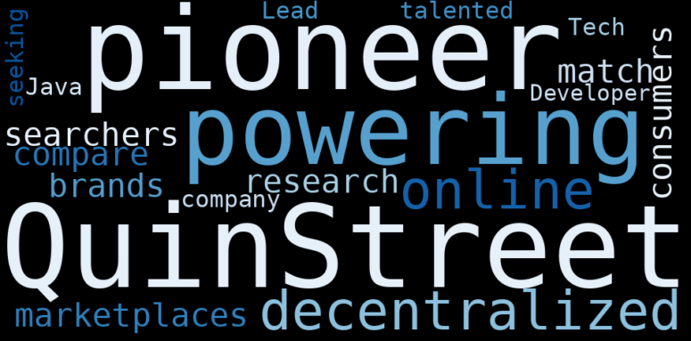 How much time have you spent trying to decide whether investing in QuinStreet? Many investors start with the dream of being free. They expect to find on the stock market an option to have time to develop their own interests and hobbies. That is, a way to escape a 9 to 5 job. However, investment is complex and investors end up spending whole days (and nights) trying to figure out which the right stock to invest is. The dream of stock investing becomes the nightmare of facing infinity amounts of information. As a solution, we programmed an artificial intelligence that reads the whole internet and the uses natural language processing and vectorizers to summarize the information. Usually, the AI reads several hundred pages and summarize it to a short document. This document presents our results. We found that the most common words in the internet about QuinStreet are: QuinStreet, pioneer, …