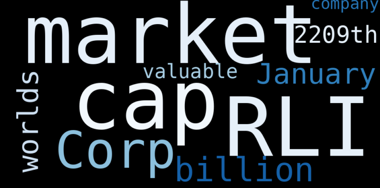 This document will help you to evaluate RLI Corp. without reading an infinite amount of sources. Relying only on stock quotes or prices to make investment decisions is a mistake. Analyzing and observing stock charts, highs and lows and other numerical data does not allow to evaluate the real value of a company. Stock quotes and prices are the result of underlying characteristics of a company and of events and news happening around them. For this reason, investing must be based on information, not numbers. As a solution, we programmed an artificial intelligence that reads the whole internet and the uses natural language processing and vectorizers to summarize the information. Usually, the AI reads several hundred pages and summarize it to a short document. This document presents our results. We found that the most common words in the internet about RLI Corp. are: RLI, market, cap, Corp, January, worlds, valuable, …