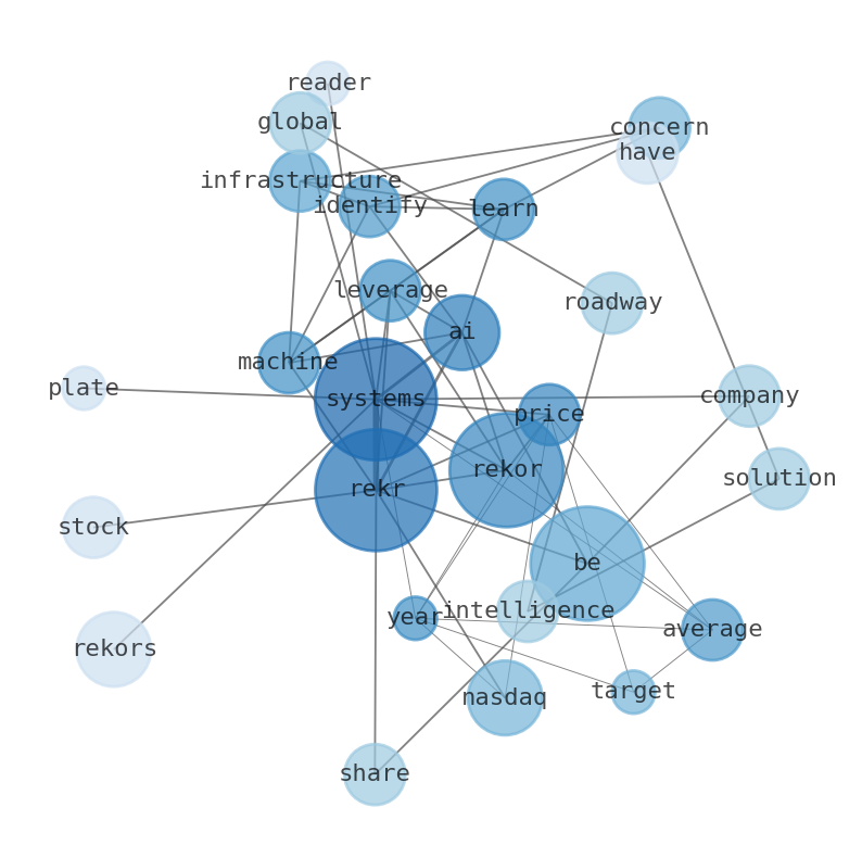 Average one-year price target for Rekor Systems ( NASDAQ:REKR )has been revised to 3.44 / share. Average portfolio weight of all funds dedicated to REKR is 0.05%, a decrease of 70.79% Total shares owned by institutions increased by 35.07% to 27,192K. Rekor Systems (REKR) is a $3 company leveraging AI and machine learning to identify infrastructure concerns. Rekors expects to report remarkable growth in revenue for second quarter of 2023. Rekor Systems, Inc. announces nomination of Professor Sanjay Sarma and Tim Davenport As New Board Directors. Distinguished nominees will bring important subject matter and analytical expertise in urban mobility and finance to the Board. Rekor Systems (REKR-Q) is a American stock, trading under the symbol REKR on the NASDAQ. It is usually referred to as NASDAQ:REKR or REKRQ. On 2023-08-01, the stock closed at a price of $3.02. Rekor Systems (REKR) leverages AI, machine learning, and holistic data to identify infrastructure concerns. The East Cocalico Township Police Department recently purchased three automated License Plate Readers from RekOr Systems. Rekors Systems ($REKR): $186.66M. Rekor Systems is a global AI technology company that provides roadway intelligence solutions to governments and businesses. Rekors solutions have applications in various industries, including law enforcement, parking management, tolling, security, and traffic monitoring. The global market for roadway intelligence is expected to grow.