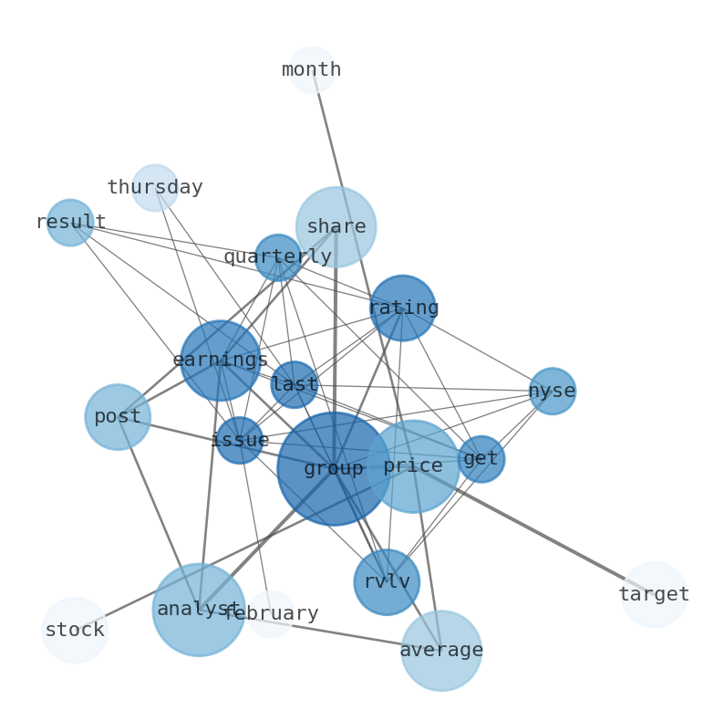 This document will help you to evaluate Revolve Group without reading an infinite amount of sources. Relying only on stock quotes or prices to make investment decisions is a mistake. Analyzing and observing stock charts, highs and lows and other numerical data does not allow to evaluate the real value of a company. Stock quotes and prices are the result of underlying characteristics of a company and of events and news happening around them. For this reason, investing must be based on information, not numbers. As a solution, we programmed an artificial intelligence that reads the whole internet and the uses natural language processing and vectorizers to summarize the information. Usually, the AI reads several hundred pages and summarize it to a short document. This document presents our results. We found that the most common words in the internet about Revolve Group are: Revolve, Group, earnings, analyst, average, Rating, predict, …