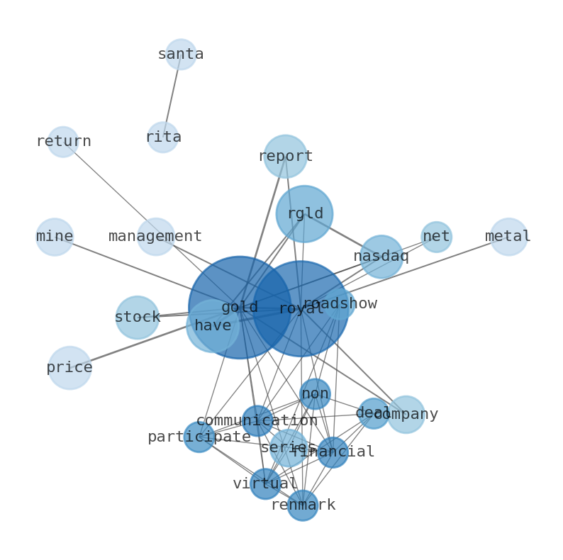 The game is changing. There is a new strategy to evaluate Royal Gold fundamental value, possible risks and most salient advantages. Investors have traditionally relied in reading large amounts of text to evaluate the fundamental value of a stock or company. However, the development of Artificial Intelligence (AI) tools is modifying the way investments are evaluated in markets. Today, machine learning, natural language processing and bigdata allow making this process automatic, reducing large amounts of text to the elements that have a higher activation in a neural network. We programmed an artificial intelligence that reads the whole internet and the uses natural language processing and vectorizers to summarize the information. Usually, the AI reads several hundred pages and summarize it to a short document. This document presents our results. We found that the most common words in the internet about Royal Gold are: Gold, Royal, RGLD, price, Inc, stock, ago, …