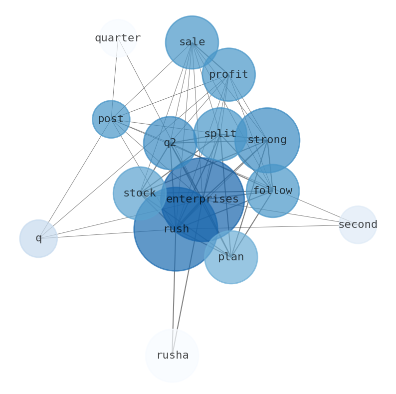 This document will help you to evaluate Rush Enterprises without reading an infinite amount of sources. Relying only on stock quotes or prices to make investment decisions is a mistake. Analyzing and observing stock charts, highs and lows and other numerical data does not allow to evaluate the real value of a company. Stock quotes and prices are the result of underlying characteristics of a company and of events and news happening around them. For this reason, investing must be based on information, not numbers. As a solution, we programmed an artificial intelligence that reads the whole internet and the uses natural language processing and vectorizers to summarize the information. Usually, the AI reads several hundred pages and summarize it to a short document. This document presents our results. We found that the most common words in the internet about Rush Enterprises are: Rush, Enterprises, strong, plan, stock, split, follow, and the most common words in the summary are: llc, service, enterprise, inc, rush, n, construction, . One of the sentences in the summary was: Rush Enterprises plans 3:2 stock split following strong Q2. Other searches related to this term that the AI found were: stockmarketlive, livestock, stockmarketforbeginners, thestockmarket, stockmarkettoday, stockmarkettrading, stockmarketstocks, todaystockmarket, thestockmarket, marketnews, stockmarketnews, whatisstockmarket, usstockmarket, stockmarketopen. #llc #service #enterprise #inc #rush #n #construction.