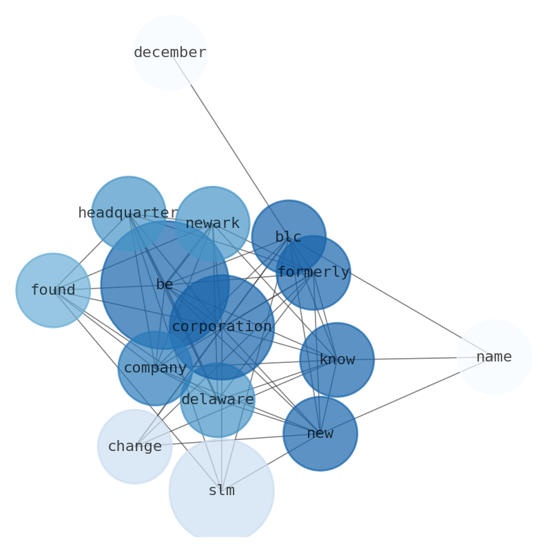 Are looking for the most relevant information about SLM Corporation? Investor spend a lot of time searching for information to make investment decisions in SLM Corporation. This task is often burdensome and consumes huge amounts of free time. It also leads to mistakes due to fatigue and bounded rationality. As a solution, we programmed an artificial intelligence that reads the whole internet and the uses natural language processing and vectorizers to summarize the information. Usually, the AI reads several hundred pages and summarize it to a short document. This document presents our results. We found that the most common words in the internet about SLM Corporation are: SLM, Corporation, found, headquarter, Newark, Delaware, company, and the most common words in the summary are: slm, bloomberg, stock, mae, corporation, job, arrow, . One of the sentences in the summary was: The company was formerly known as New BLC Corporation and changed its name to SLM in December 2013.. Other searches related to this term that the AI found were: stockmarketlive, livestock, stockmarketforbeginners, thestockmarket, stockmarkettoday, stockmarkettrading, stockmarketstocks, todaystockmarket, thestockmarket, marketnews, stockmarketnews, whatisstockmarket, usstockmarket, stockmarketopen. #slm #bloomberg #stock #mae #corporation #job #arrow.