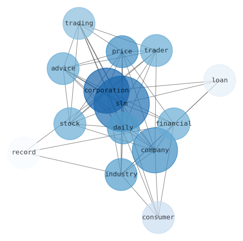 Are looking for the most relevant information about SLM Corporation? Investor spend a lot of time searching for information to make investment decisions in SLM Corporation. This task is often burdensome and consumes huge amounts of free time. It also leads to mistakes due to fatigue and bounded rationality. As a solution, we programmed an artificial intelligence that reads the whole internet and the uses natural language processing and vectorizers to summarize the information. Usually, the AI reads several hundred pages and summarize it to a short document. This document presents our results. We found that the most common words in the internet about SLM Corporation are: Corporation, SLM, Company, Slm, Trading, Advice, Stock, and the most common words in the summary are: slm, job, printer, stock, king, bloomberg, market, . One of the sentences in the summary was: Slm Corporation $SLM Trading Advice: Stock Traders Daily Price: 75.00 Company: …