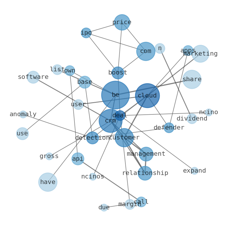 The game is changing. There is a new strategy to evaluate Salesforce fundamental value, possible risks and most salient advantages. Investors have traditionally relied in reading large amounts of text to evaluate the fundamental value of a stock or company. However, the development of Artificial Intelligence (AI) tools is modifying the way investments are evaluated in markets. Today, machine learning, natural language processing and bigdata allow making this process automatic, reducing large amounts of text to the elements that have a higher activation in a neural network. We programmed an artificial intelligence that reads the whole internet and the uses natural language processing and vectorizers to summarize the information. Usually, the AI reads several hundred pages and summarize it to a short document. This document presents our results. We found that the most common words in the internet about Salesforce are: Salesforce, Cloud, CRM, share, Marketing, customer, Salesforcecom, and the …