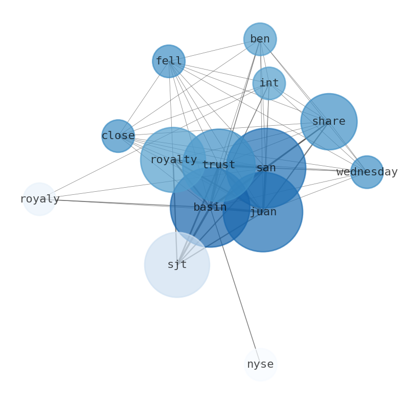 How much time have you spent trying to decide whether investing in San Juan Basin Royalty Trust? Many investors start with the dream of being free. They expect to find on the stock market an option to have time to develop their own interests and hobbies. That is, a way to escape a 9 to 5 job. However, investment is complex and investors end up spending whole days (and nights) trying to figure out which the right stock to invest is. The dream of stock investing becomes the nightmare of facing infinity amounts of information. As a solution, we programmed an artificial intelligence that reads the whole internet and the uses natural language processing and vectorizers to summarize the information. Usually, the AI reads several hundred pages and summarize it to a short document. This document presents our results. We found that the most common words in the internet about …