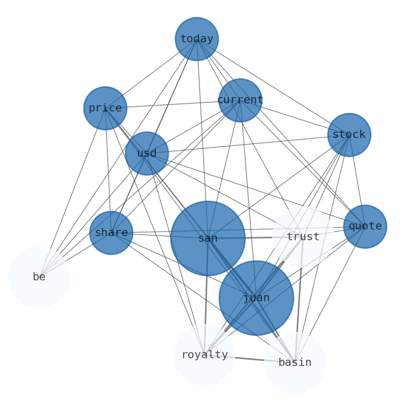 The game is changing. There is a new strategy to evaluate San Juan Basin Royalty Trust fundamental value, possible risks and most salient advantages. Investors have traditionally relied in reading large amounts of text to evaluate the fundamental value of a stock or company. However, the development of Artificial Intelligence (AI) tools is modifying the way investments are evaluated in markets. Today, machine learning, natural language processing and bigdata allow making this process automatic, reducing large amounts of text to the elements that have a higher activation in a neural network. We programmed an artificial intelligence that reads the whole internet and the uses natural language processing and vectorizers to summarize the information. Usually, the AI reads several hundred pages and summarize it to a short document. This document presents our results. We found that the most common words in the internet about San Juan Basin Royalty Trust are: San, …