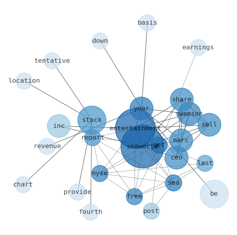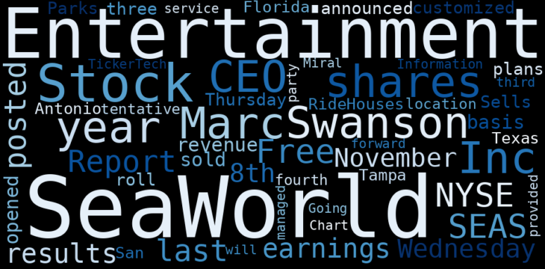 This document will help you to evaluate SeaWorld Entertainment without reading an infinite amount of sources. Relying only on stock quotes or prices to make investment decisions is a mistake. Analyzing and observing stock charts, highs and lows and other numerical data does not allow to evaluate the real value of a company. Stock quotes and prices are the result of underlying characteristics of a company and of events and news happening around them. For this reason, investing must be based on information, not numbers. As a solution, we programmed an artificial intelligence that reads the whole internet and the uses natural language processing and vectorizers to summarize the information. Usually, the AI reads several hundred pages and summarize it to a short document. This document presents our results. We found that the most common words in the internet about SeaWorld Entertainment are: SeaWorld, Entertainment, CEO, Marc, Swanson, Inc, Stock, …