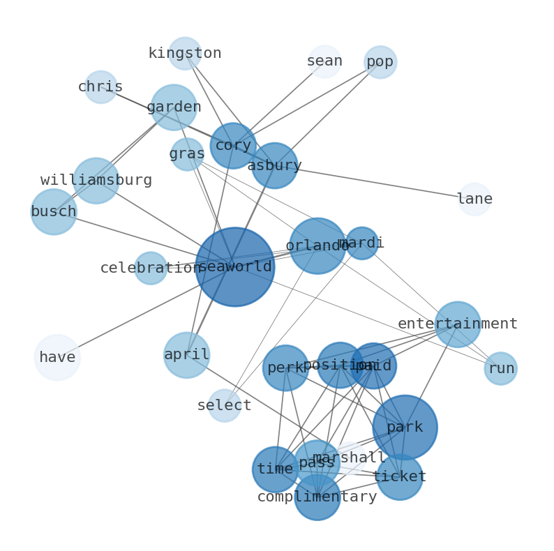 The game is changing. There is a new strategy to evaluate SeaWorld Entertainment fundamental value, possible risks and most salient advantages. Investors have traditionally relied in reading large amounts of text to evaluate the fundamental value of a stock or company. However, the development of Artificial Intelligence (AI) tools is modifying the way investments are evaluated in markets. Today, machine learning, natural language processing and bigdata allow making this process automatic, reducing large amounts of text to the elements that have a higher activation in a neural network. We programmed an artificial intelligence that reads the whole internet and the uses natural language processing and vectorizers to summarize the information. Usually, the AI reads several hundred pages and summarize it to a short document. This document presents our results. We found that the most common words in the internet about SeaWorld Entertainment are: SeaWorld, Orlando, Country, Cory, Asbury, April, Paid, …