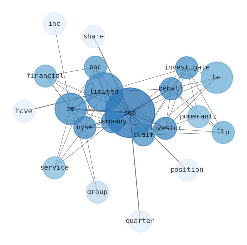 This document will help you to evaluate Sea Limited without reading an infinite amount of sources. Relying only on stock quotes or prices to make investment decisions is a mistake. Analyzing and observing stock charts, highs and lows and other numerical data does not allow to evaluate the real value of a company. Stock quotes and prices are the result of underlying characteristics of a company and of events and news happening around them. For this reason, investing must be based on information, not numbers. As a solution, we programmed an artificial intelligence that reads the whole internet and the uses natural language processing and vectorizers to summarize the information. Usually, the AI reads several hundred pages and summarize it to a short document. This document presents our results. We found that the most common words in the internet about Sea Limited are: Sea, Limited, SE, Pomerantz, LLP, investigate, claim, …