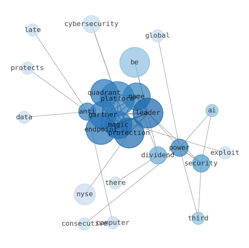 Are looking for the most relevant information about SentinelOne? Investor spend a lot of time searching for information to make investment decisions in SentinelOne. This task is often burdensome and consumes huge amounts of free time. It also leads to mistakes due to fatigue and bounded rationality. As a solution, we programmed an artificial intelligence that reads the whole internet and the uses natural language processing and vectorizers to summarize the information. Usually, the AI reads several hundred pages and summarize it to a short document. This document presents our results. We found that the most common words in the internet about SentinelOne are: SentinelOne, name, Gartner, Magic, Quadrant, Endpoint, Protection, and the most common words in the summary are: sentinelone, singularity, threat, platform, cybersecurity, security, service, . One of the sentences in the summary was: SentinelOne protects your computer and data with anti-malware and anti-exploit protection.. Other searches related to this term that the AI found were: stockmarketlive, livestock, stockmarketforbeginners, thestockmarket, stockmarkettoday, stockmarkettrading, stockmarketstocks, todaystockmarket, thestockmarket, marketnews, stockmarketnews, whatisstockmarket, usstockmarket, stockmarketopen. #sentinelone #singularity #threat #platform #cybersecurity #security #service.