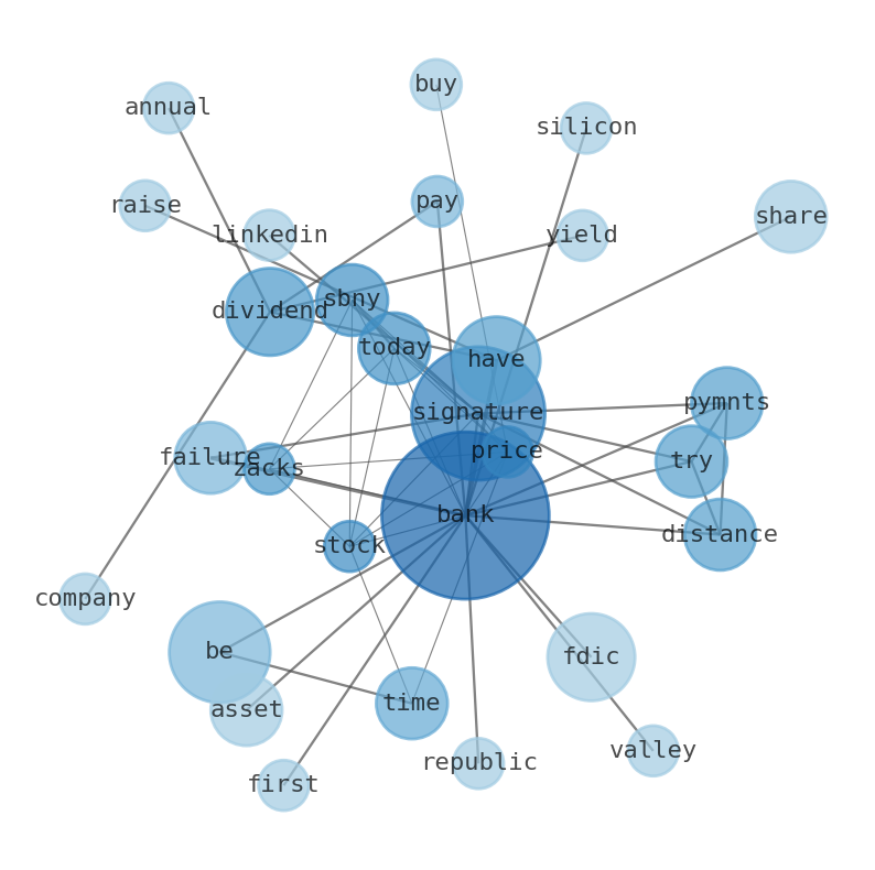The game is changing. There is a new strategy to evaluate Signature Bank fundamental value, possible risks and most salient advantages. Investors have traditionally relied in reading large amounts of text to evaluate the fundamental value of a stock or company. However, the development of Artificial Intelligence (AI) tools is modifying the way investments are evaluated in markets. Today, machine learning, natural language processing and bigdata allow making this process automatic, reducing large amounts of text to the elements that have a higher activation in a neural network. We programmed an artificial intelligence that reads the whole internet and the uses natural language processing and vectorizers to summarize the information. Usually, the AI reads several hundred pages and summarize it to a short document. This document presents our results. We found that the most common words in the internet about Signature Bank are: Bank, Signature, bank, dividend, FDIC, SBNY, try, …