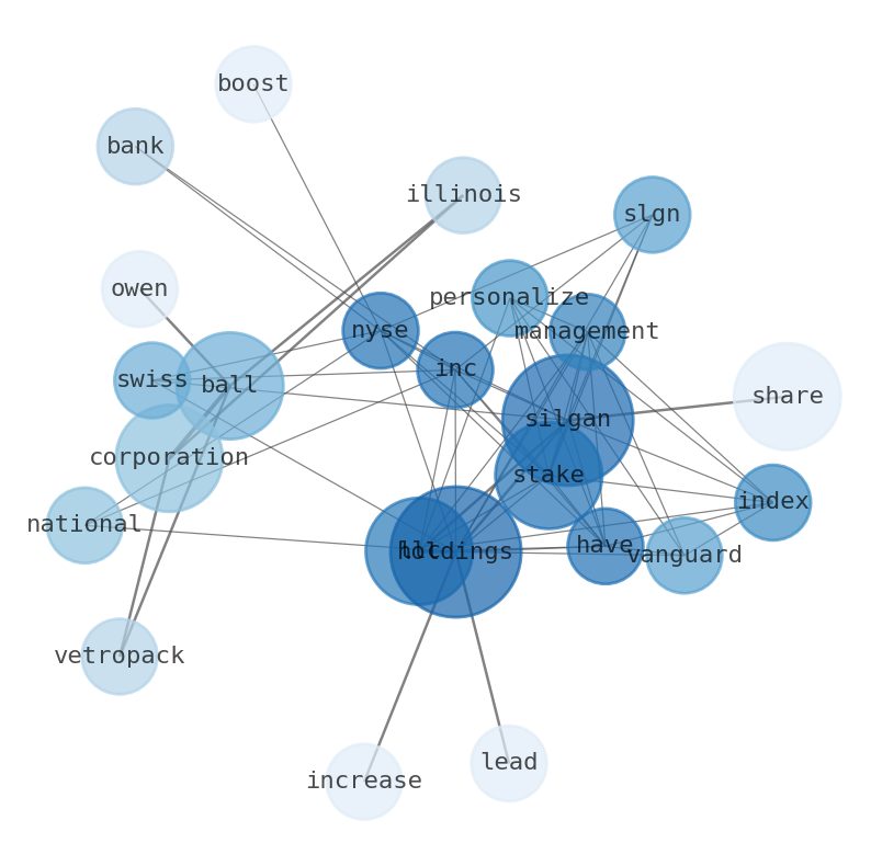 This document will help you to evaluate Silgan Holdings without reading an infinite amount of sources. Relying only on stock quotes or prices to make investment decisions is a mistake. Analyzing and observing stock charts, highs and lows and other numerical data does not allow to evaluate the real value of a company. Stock quotes and prices are the result of underlying characteristics of a company and of events and news happening around them. For this reason, investing must be based on information, not numbers. As a solution, we programmed an artificial intelligence that reads the whole internet and the uses natural language processing and vectorizers to summarize the information. Usually, the AI reads several hundred pages and summarize it to a short document. This document presents our results. We found that the most common words in the internet about Silgan Holdings are: Silgan, LLC, stake, Holdings, share, Ball, Corporation, …