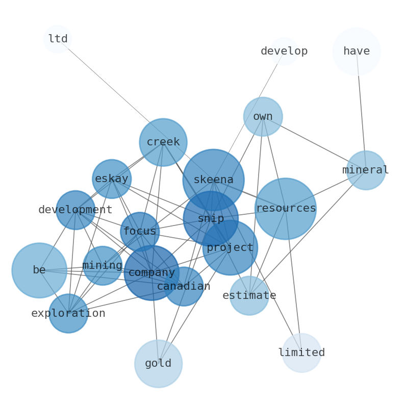 Are looking for the most relevant information about Skeena Resources? Investor spend a lot of time searching for information to make investment decisions in Skeena Resources. This task is often burdensome and consumes huge amounts of free time. It also leads to mistakes due to fatigue and bounded rationality. As a solution, we programmed an artificial intelligence that reads the whole internet and the uses natural language processing and vectorizers to summarize the information. Usually, the AI reads several hundred pages and summarize it to a short document. This document presents our results. We found that the most common words in the internet about Skeena Resources are: Skeena, company, Snip, Resources, Creek, Limited, Mineral, and the most common words in the summary are: resource, corp, ltd, gold, inc, sep, news, . One of the sentences in the summary was: Skeena Resources Ltd. Other searches related to this term that the …