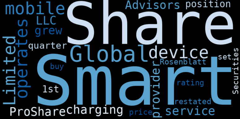 How much time have you spent trying to decide whether investing in Smart Share Global? Many investors start with the dream of being free. They expect to find on the stock market an option to have time to develop their own interests and hobbies. That is, a way to escape a 9 to 5 job. However, investment is complex and investors end up spending whole days (and nights) trying to figure out which the right stock to invest is. The dream of stock investing becomes the nightmare of facing infinity amounts of information. As a solution, we programmed an artificial intelligence that reads the whole internet and the uses natural language processing and vectorizers to summarize the information. Usually, the AI reads several hundred pages and summarize it to a short document. This document presents our results. We found that the most common words in the internet about Smart Share …