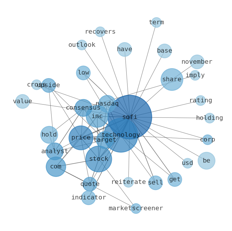 Are looking for the most relevant information about SoFi Technologies? Investor spend a lot of time searching for information to make investment decisions in SoFi Technologies. This task is often burdensome and consumes huge amounts of free time. It also leads to mistakes due to fatigue and bounded rationality. As a solution, we programmed an artificial intelligence that reads the whole internet and the uses natural language processing and vectorizers to summarize the information. Usually, the AI reads several hundred pages and summarize it to a short document. This document presents our results. We found that the most common words in the internet about SoFi Technologies are: SoFi, Technologies, SOFI, price, stock, Inc, share, and the most common words in the summary are: sofi, stock, technology, price, market, top, inc, . One of the sentences in the summary was: Morgan Stanley analysts “walked away from 3Qs results incrementally more positive …