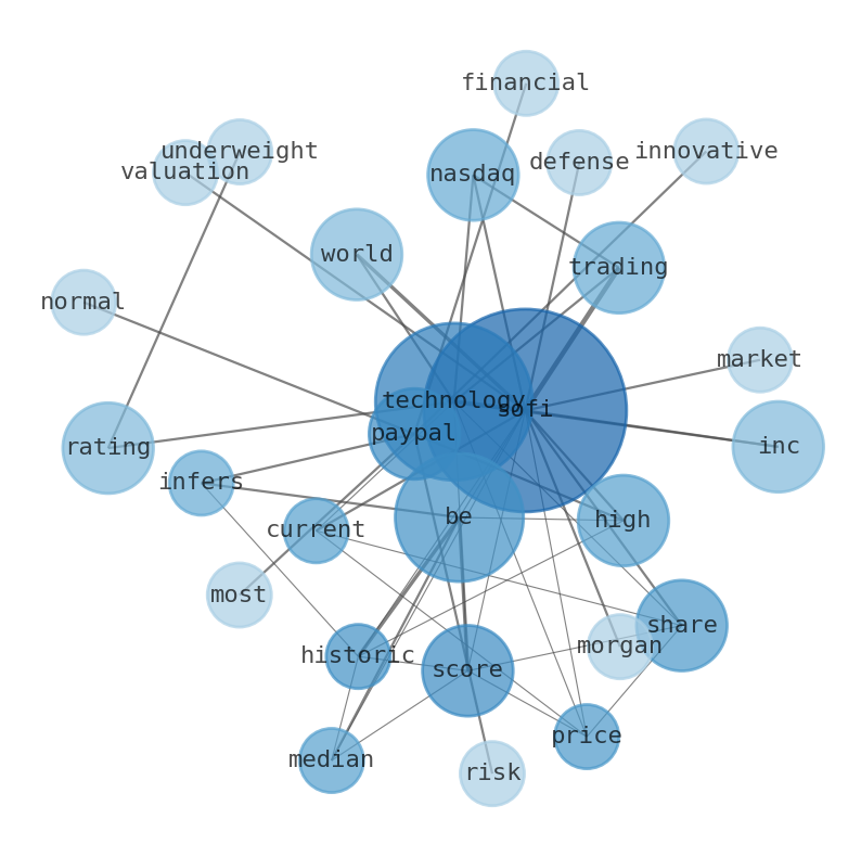 The game is changing. There is a new strategy to evaluate SoFi Technologies fundamental value, possible risks and most salient advantages. Investors have traditionally relied in reading large amounts of text to evaluate the fundamental value of a stock or company. However, the development of Artificial Intelligence (AI) tools is modifying the way investments are evaluated in markets. Today, machine learning, natural language processing and bigdata allow making this process automatic, reducing large amounts of text to the elements that have a higher activation in a neural network. We programmed an artificial intelligence that reads the whole internet and the uses natural language processing and vectorizers to summarize the information. Usually, the AI reads several hundred pages and summarize it to a short document. This document presents our results. We found that the most common words in the internet about SoFi Technologies are: Technologies, SoFi, SOFI, share, high, PayPal, world, …
