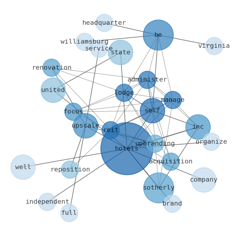 Sotherly Hotels Inc. is a self-managed and self-administered lodging REIT focused on the acquisition, renovation, upbranding and repositioning of upscale to upper-upscale full-service hotels in the Southern United States. Sotherly may also opportunistically acquire hotels throughout the United States. Currently, the Company's portfolio consists of investments in ten hotel properties, comprising 2,786 rooms, as well as interests in two condominium hotels and their associated rental programs. The Company owns hotels that operate under the Hilton Worldwide and Hyatt Hotels Corporation brands, as well as independent hotels. Sotherly Hotels Inc. was organized in 2004 and is headquartered in Williamsburg, Virginia.