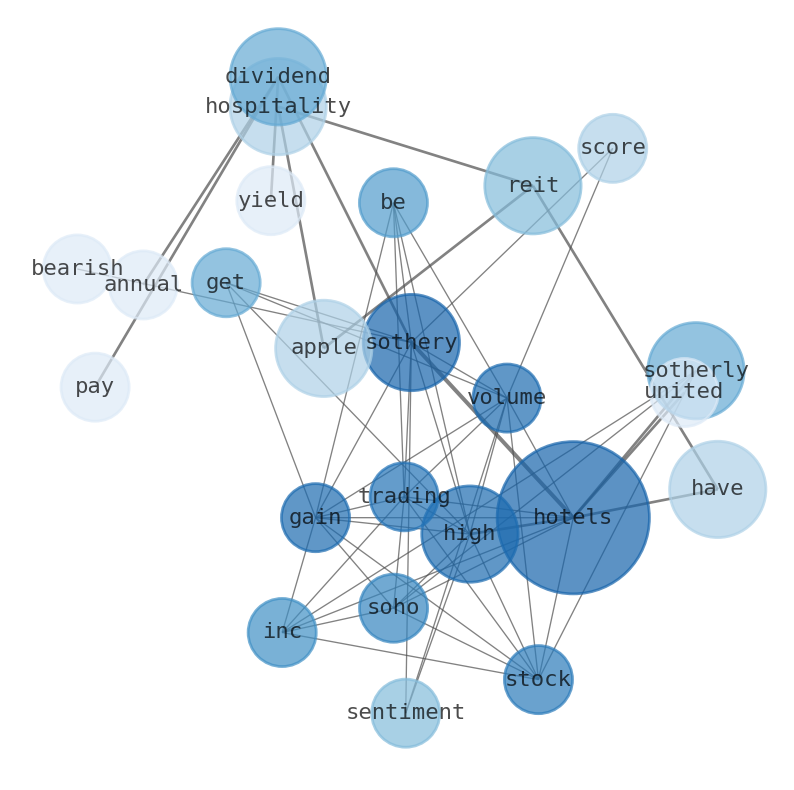 Are looking for the most relevant information about Sotherly Hotels? Investor spend a lot of time searching for information to make investment decisions in Sotherly Hotels. This task is often burdensome and consumes huge amounts of free time. It also leads to mistakes due to fatigue and bounded rationality. As a solution, we programmed an artificial intelligence that reads the whole internet and the uses natural language processing and vectorizers to summarize the information. Usually, the AI reads several hundred pages and summarize it to a short document. This document presents our results. We found that the most common words in the internet about Sotherly Hotels are: Hotels, Sotherly, high, Sothery, Apple, REIT, dividend, and the most common words in the summary are: hotel, dividend, sotherly, etf, fund, inc, share, . One of the sentences in the summary was: Sotherly Hotels Inc ( SOHO ) stock is trading at $2.00, …