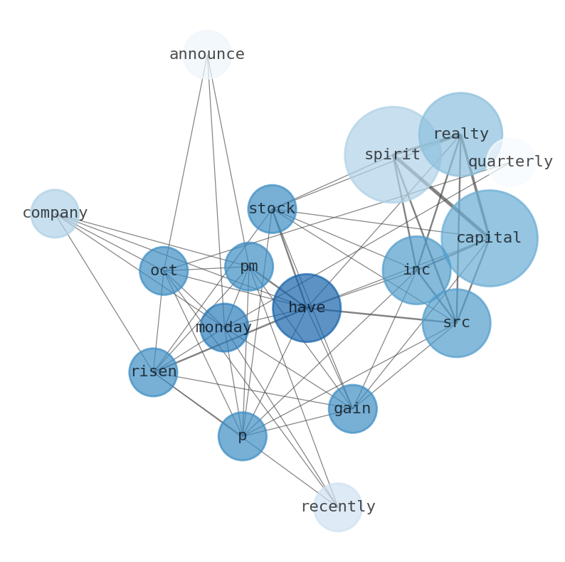The game is changing. There is a new strategy to evaluate Spirit Realty Capital fundamental value, possible risks and most salient advantages. Investors have traditionally relied in reading large amounts of text to evaluate the fundamental value of a stock or company. However, the development of Artificial Intelligence (AI) tools is modifying the way investments are evaluated in markets. Today, machine learning, natural language processing and bigdata allow making this process automatic, reducing large amounts of text to the elements that have a higher activation in a neural network. We programmed an artificial intelligence that reads the whole internet and the uses natural language processing and vectorizers to summarize the information. Usually, the AI reads several hundred pages and summarize it to a short document. This document presents our results. We found that the most common words in the internet about Spirit Realty Capital are: Spirit, Capital, Realty, Inc, SRC, …