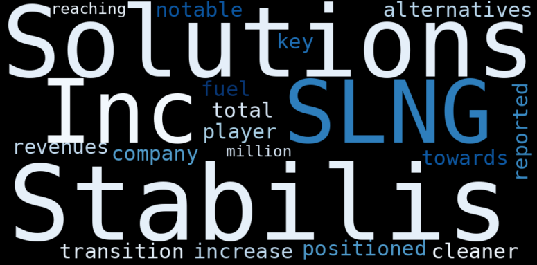 Are looking for the most relevant information about Stabilis Solutions? Investor spend a lot of time searching for information to make investment decisions in Stabilis Solutions. This task is often burdensome and consumes huge amounts of free time. It also leads to mistakes due to fatigue and bounded rationality. As a solution, we programmed an artificial intelligence that reads the whole internet and the uses natural language processing and vectorizers to summarize the information. Usually, the AI reads several hundred pages and summarize it to a short document. This document presents our results. We found that the most common words in the internet about Stabilis Solutions are: Stabilis, Solutions, Inc, SLNG, position, key, player, and the most common words in the summary are: post, solution, stabilis, best, bloomberg, galveston, market, . One of the sentences in the summary was: Stabilis Solutions, Inc. Other searches related to this term that the …