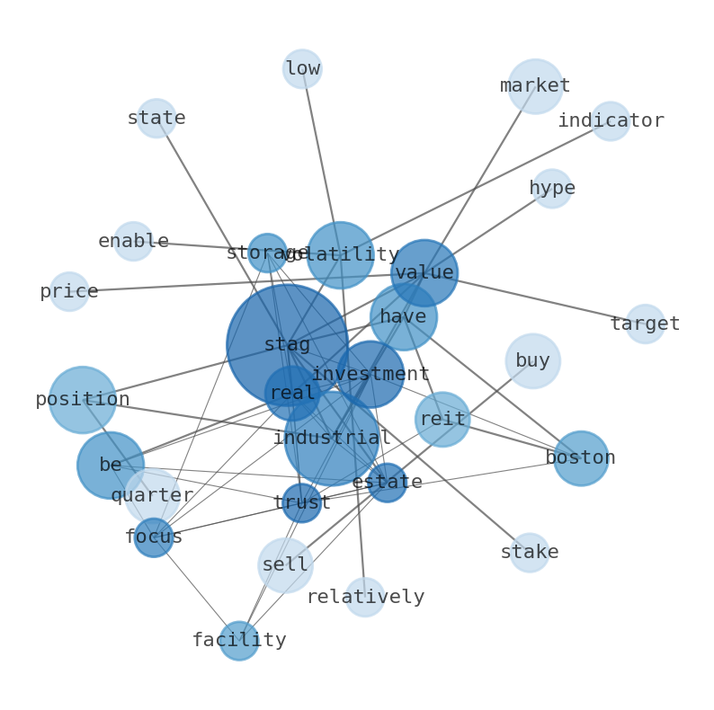 Are looking for the most relevant information about Stag Industrial? Investor spend a lot of time searching for information to make investment decisions in Stag Industrial. This task is often burdensome and consumes huge amounts of free time. It also leads to mistakes due to fatigue and bounded rationality. As a solution, we programmed an artificial intelligence that reads the whole internet and the uses natural language processing and vectorizers to summarize the information. Usually, the AI reads several hundred pages and summarize it to a short document. This document presents our results. We found that the most common words in the internet about Stag Industrial are: STAG, Industrial, Stag, position, Value, investment, REIT, and the most common words in the summary are: stag, industrial, stock, stagwell, market, job, service, . One of the sentences in the summary was: State Street Corp grew its position in shares of STAG industrial …