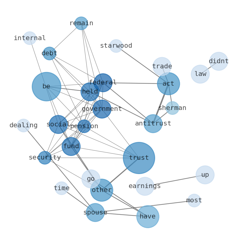 the remaining $7.6 trillion is held in federal government pension funds, social security trust Funds, and other “internal” government accounts. the remainder is held on the Sherman Antitrust Act of 1890, the Clayton Antitrust act of 1914, and the Federal Trade Commission Act of 1914.