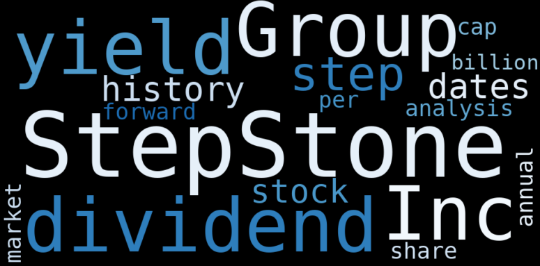 This document will help you to evaluate StepStone Group without reading an infinite amount of sources. Relying only on stock quotes or prices to make investment decisions is a mistake. Analyzing and observing stock charts, highs and lows and other numerical data does not allow to evaluate the real value of a company. Stock quotes and prices are the result of underlying characteristics of a company and of events and news happening around them. For this reason, investing must be based on information, not numbers. As a solution, we programmed an artificial intelligence that reads the whole internet and the uses natural language processing and vectorizers to summarize the information. Usually, the AI reads several hundred pages and summarize it to a short document. This document presents our results. We found that the most common words in the internet about StepStone Group are: StepStone, Inc, dividend, yield, Group, step, history, …