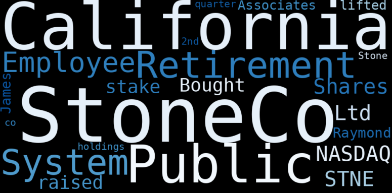 StoneCo Ltd. (NASDAQ:STNE) Shares Bought by California Public Employees Retirement System. California Public Employee Retirement System raised its stake in StoneCo. Raymond James & Associates lifted its holdings in Stone co by 200.9% during the 2nd quarter.