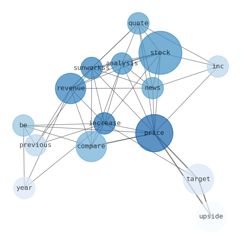 This document will help you to evaluate Sunworks without reading an infinite amount of sources. Relying only on stock quotes or prices to make investment decisions is a mistake. Analyzing and observing stock charts, highs and lows and other numerical data does not allow to evaluate the real value of a company. Stock quotes and prices are the result of underlying characteristics of a company and of events and news happening around them. For this reason, investing must be based on information, not numbers. As a solution, we programmed an artificial intelligence that reads the whole internet and the uses natural language processing and vectorizers to summarize the information. Usually, the AI reads several hundred pages and summarize it to a short document. This document presents our results. We found that the most common words in the internet about Sunworks are: Sunworks, stock, price, revenue, compare, upside, SMA, and the most common words in the summary are: sunworks, solar, stock, inc, follow, b, accesswire, . One of the sentences in the summary was: Sunworks, inc. Other searches related to this term that the AI found were: stockmarketlive, livestock, stockmarketforbeginners, thestockmarket, stockmarkettoday, stockmarkettrading, stockmarketstocks, todaystockmarket, thestockmarket, marketnews, stockmarketnews, whatisstockmarket, usstockmarket, stockmarketopen. #sunworks #solar #stock #inc #follow #b #accesswire.