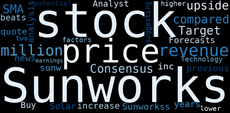 Are looking for the most relevant information about Sunworks? Investor spend a lot of time searching for information to make investment decisions in Sunworks. This task is often burdensome and consumes huge amounts of free time. It also leads to mistakes due to fatigue and bounded rationality. As a solution, we programmed an artificial intelligence that reads the whole internet and the uses natural language processing and vectorizers to summarize the information. Usually, the AI reads several hundred pages and summarize it to a short document. This document presents our results. We found that the most common words in the internet about Sunworks are: Sunworks, stock, price, revenue, compare, upside, SMA, and the most common words in the summary are: sunworks, solar, stock, inc, follow, b, accesswire, . One of the sentences in the summary was: Sunworks, inc. Other searches related to this term that the AI found were: stockmarketlive, …