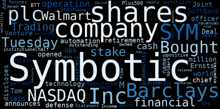 How much time have you spent trying to decide whether investing in Symbotic? Many investors start with the dream of being free. They expect to find on the stock market an option to have time to develop their own interests and hobbies. That is, a way to escape a 9 to 5 job. However, investment is complex and investors end up spending whole days (and nights) trying to figure out which the right stock to invest is. The dream of stock investing becomes the nightmare of facing infinity amounts of information. As a solution, we programmed an artificial intelligence that reads the whole internet and the uses natural language processing and vectorizers to summarize the information. Usually, the AI reads several hundred pages and summarize it to a short document. This document presents our results. We found that the most common words in the internet about Symbotic are: Symbotic, company, …