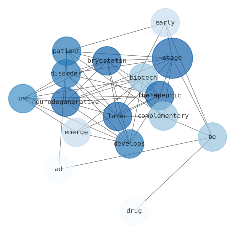 Emerging biotech, Synaptogenix Inc., develops therapeutics for neurodegenerative disorders. Bryostatin-1 for later-stage patients would be complementary to the early-stage AD drugs in providing a full range of treatment options.