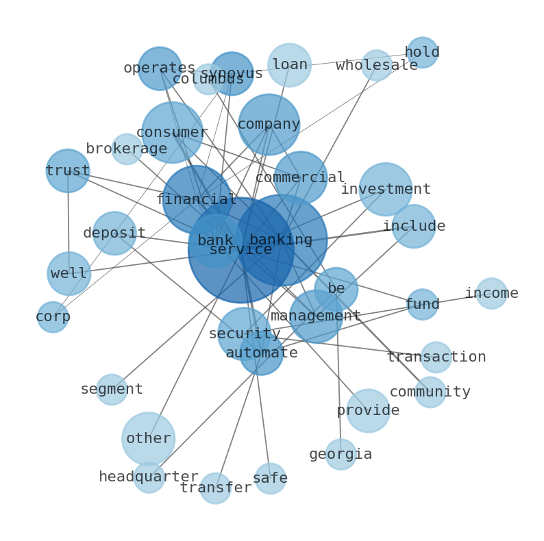 Synovus Financial Corp. operates as the bank holding company for Synovus Bank that provides commercial and consumer banking products and services. It operates through four segments: Community Banking, Wholesale Banking, Consumer Banking, and Financial Management Services. The company's commercial banking services include treasury and asset management, capital market, and institutional trust services, as well as commercial, financial, and real estate loans. Its consumer banking services comprise accepting customary types of demand and savings deposits accounts; mortgage, installment, and other consumer loans; investment and brokerage services; safe deposit services; automated banking services; automated fund transfers; internet-based banking services; and bank credit and debit card services. The company also offers various other financial services, including portfolio management for fixed-income securities, investment banking, execution of securities transactions as a broker/dealer, and trust and financial planning services, as well as provides individual investment advice on equity and other securities. The company was founded in 1888 and is headquartered in Columbus, Georgia.