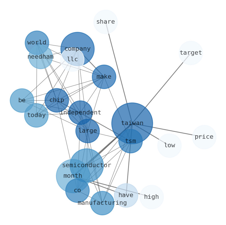 This document will help you to evaluate Taiwan Semiconductor Manufacturing Company without reading an infinite amount of sources. Relying only on stock quotes or prices to make investment decisions is a mistake. Analyzing and observing stock charts, highs and lows and other numerical data does not allow to evaluate the real value of a company. Stock quotes and prices are the result of underlying characteristics of a company and of events and news happening around them. For this reason, investing must be based on information, not numbers. As a solution, we programmed an artificial intelligence that reads the whole internet and the uses natural language processing and vectorizers to summarize the information. Usually, the AI reads several hundred pages and summarize it to a short document. This document presents our results. We found that the most common words in the internet about Taiwan Semiconductor Manufacturing Company are: Taiwan, Semiconductor, Manufacturing, Co, TSM, large, independent, and the most common words in the summary are: semiconductor, taiwan, stock, company, manufacturing, manufacture, co, . One of the sentences in the summary was: Taiwan has a 12 month low of $59.43 and a 12-month high of $98.99.. Other searches related to this term that the AI found were: stockmarketlive, livestock, stockmarketforbeginners, thestockmarket, stockmarkettoday, stockmarkettrading, stockmarketstocks, todaystockmarket, thestockmarket, marketnews, stockmarketnews, whatisstockmarket, usstockmarket, stockmarketopen. #semiconductor #taiwan #stock #company #manufacturing #manufacture #co.