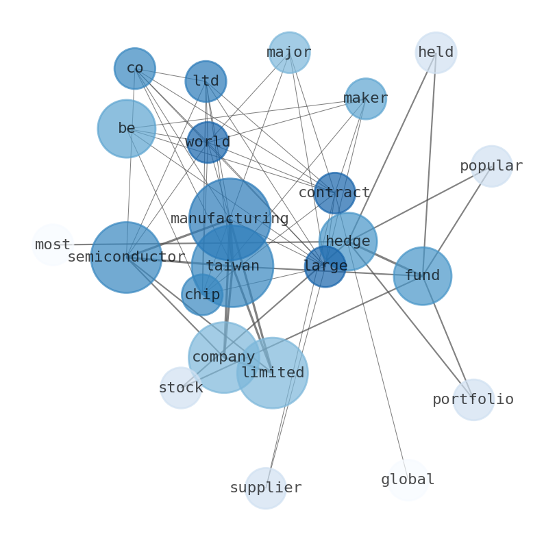 This document will help you to evaluate Taiwan Semiconductor Manufacturing Company without reading an infinite amount of sources. Relying only on stock quotes or prices to make investment decisions is a mistake. Analyzing and observing stock charts, highs and lows and other numerical data does not allow to evaluate the real value of a company. Stock quotes and prices are the result of underlying characteristics of a company and of events and news happening around them. For this reason, investing must be based on information, not numbers. As a solution, we programmed an artificial intelligence that reads the whole internet and the uses natural language processing and vectorizers to summarize the information. Usually, the AI reads several hundred pages and summarize it to a short document. This document presents our results. We found that the most common words in the internet about Taiwan Semiconductor Manufacturing Company are: Taiwan, Manufacturing, Company, …