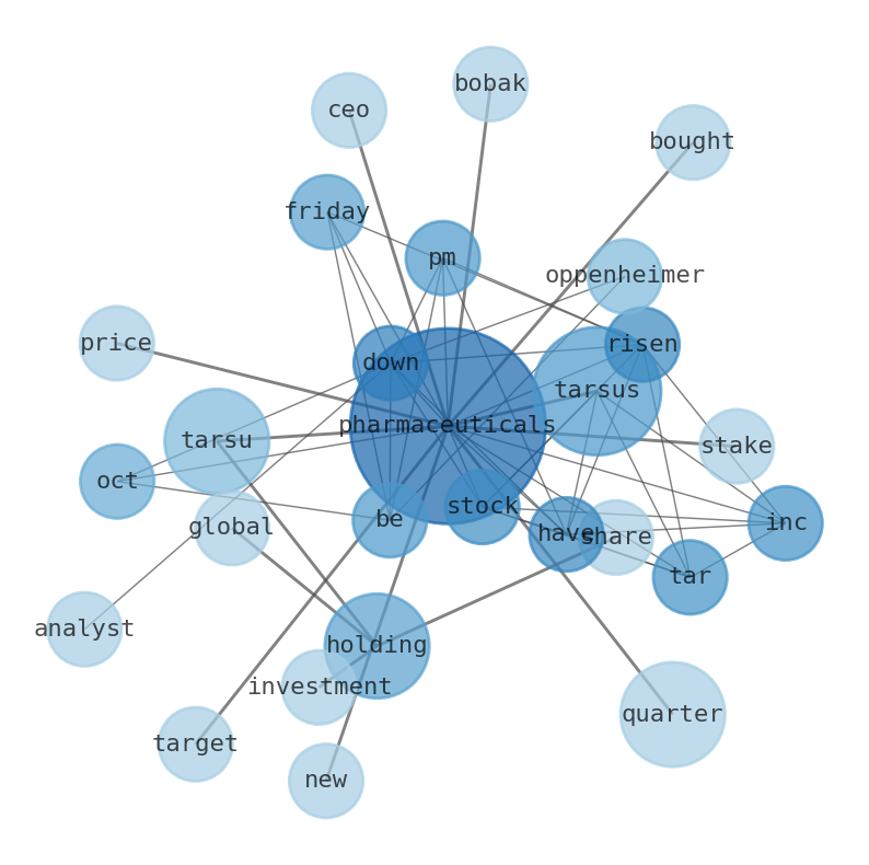 This document will help you to evaluate Tarsus Pharmaceuticals without reading an infinite amount of sources. Relying only on stock quotes or prices to make investment decisions is a mistake. Analyzing and observing stock charts, highs and lows and other numerical data does not allow to evaluate the real value of a company. Stock quotes and prices are the result of underlying characteristics of a company and of events and news happening around them. For this reason, investing must be based on information, not numbers. As a solution, we programmed an artificial intelligence that reads the whole internet and the uses natural language processing and vectorizers to summarize the information. Usually, the AI reads several hundred pages and summarize it to a short document. This document presents our results. We found that the most common words in the internet about Tarsus Pharmaceuticals are: Pharmaceuticals, Tarsus, Tarsu, R, quarter, Inc, TARS, and the most common words in the summary are: pharmaceutical, tarsus, inc, company, stock, report, news, . One of the sentences in the summary was: Tarsus Pharmaceuticals Inc (TARS) stock has risen 3.66% while the S&P 500 is down -0.43% as of 1:34 PM on Friday, Oct 27. Other searches related to this term that the AI found were: stockmarketlive, livestock, stockmarketforbeginners, thestockmarket, stockmarkettoday, stockmarkettrading, stockmarketstocks, todaystockmarket, thestockmarket, marketnews, stockmarketnews, whatisstockmarket, usstockmarket, stockmarketopen. #pharmaceutical #tarsus #inc #company #stock #report #news.