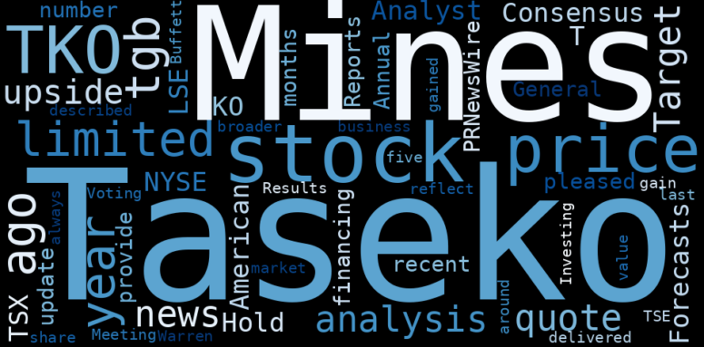 How much time have you spent trying to decide whether investing in Taseko Mines? Many investors start with the dream of being free. They expect to find on the stock market an option to have time to develop their own interests and hobbies. That is, a way to escape a 9 to 5 job. However, investment is complex and investors end up spending whole days (and nights) trying to figure out which the right stock to invest is. The dream of stock investing becomes the nightmare of facing infinity amounts of information. As a solution, we programmed an artificial intelligence that reads the whole internet and the uses natural language processing and vectorizers to summarize the information. Usually, the AI reads several hundred pages and summarize it to a short document. This document presents our results. We found that the most common words in the internet about Taseko Mines are: …