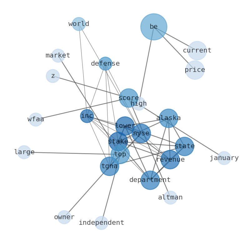 This document will help you to evaluate Tegna without reading an infinite amount of sources. Relying only on stock quotes or prices to make investment decisions is a mistake. Analyzing and observing stock charts, highs and lows and other numerical data does not allow to evaluate the real value of a company. Stock quotes and prices are the result of underlying characteristics of a company and of events and news happening around them. For this reason, investing must be based on information, not numbers. As a solution, we programmed an artificial intelligence that reads the whole internet and the uses natural language processing and vectorizers to summarize the information. Usually, the AI reads several hundred pages and summarize it to a short document. This document presents our results. We found that the most common words in the internet about Tegna are: Tegna, TEGNA, State, lower, stake, price, current, and the …