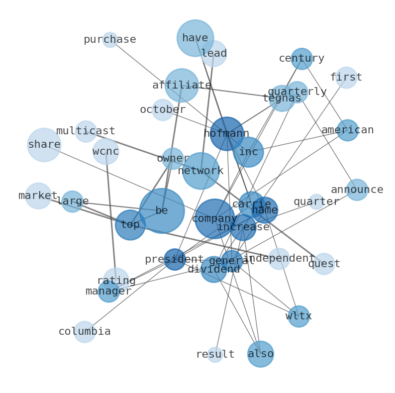 This document will help you to evaluate Tegna without reading an infinite amount of sources. Relying only on stock quotes or prices to make investment decisions is a mistake. Analyzing and observing stock charts, highs and lows and other numerical data does not allow to evaluate the real value of a company. Stock quotes and prices are the result of underlying characteristics of a company and of events and news happening around them. For this reason, investing must be based on information, not numbers. As a solution, we programmed an artificial intelligence that reads the whole internet and the uses natural language processing and vectorizers to summarize the information. Usually, the AI reads several hundred pages and summarize it to a short document. This document presents our results. We found that the most common words in the internet about Tegna are: TEGNA, company, share, Hofmann, Tegna, affiliate, top, and the …