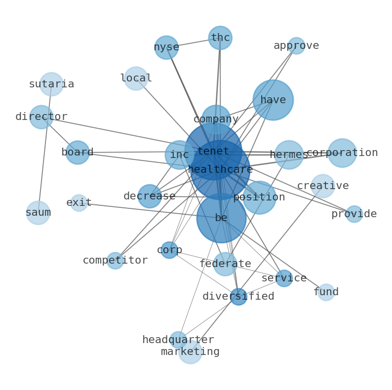Are looking for the most relevant information about Tenet Healthcare? Investor spend a lot of time searching for information to make investment decisions in Tenet Healthcare. This task is often burdensome and consumes huge amounts of free time. It also leads to mistakes due to fatigue and bounded rationality. As a solution, we programmed an artificial intelligence that reads the whole internet and the uses natural language processing and vectorizers to summarize the information. Usually, the AI reads several hundred pages and summarize it to a short document. This document presents our results. We found that the most common words in the internet about Tenet Healthcare are: Tenet, Healthcare, position, healthcare, company, Corporation, Hermes, and the most common words in the summary are: healthcare, tenet, job, health, corporation, thc, business, . One of the sentences in the summary was: CEO Saum Sutaria, M.D., to assume additional position of Chairman, effective …