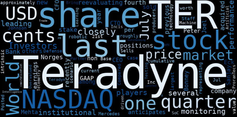 The development of Artificial Intelligence (AI) is modifying the way investments are evaluated. We programmed an artificial intelligence (A.I.) to summarize the whole internet. Whether you’re trying to make money investing online, making financial decisions or just getting informed about Wall Street, this page is a way to get informed without reading hundred of pages. Our stock market summary graphs are produced using machine learning, an unbiased view to capture what internet is saying. Usually, the AI reads several hundred pages and summarize it to a short text and several charts.