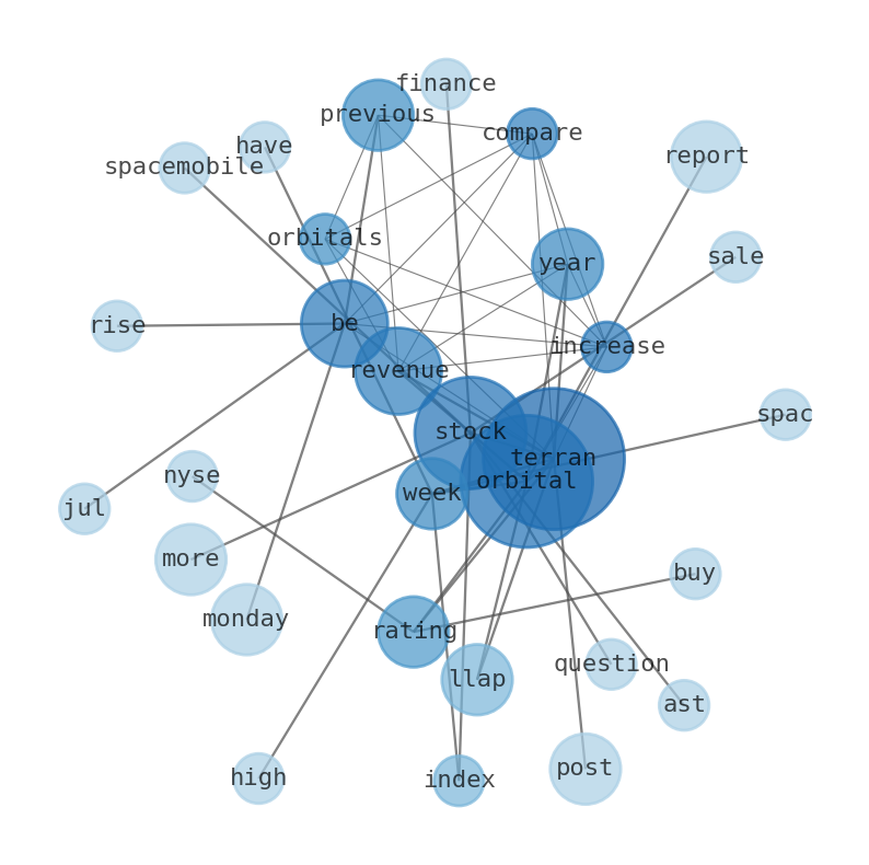 Are looking for the most relevant information about Terran Orbital? Investor spend a lot of time searching for information to make investment decisions in Terran Orbital. This task is often burdensome and consumes huge amounts of free time. It also leads to mistakes due to fatigue and bounded rationality. As a solution, we programmed an artificial intelligence that reads the whole internet and the uses natural language processing and vectorizers to summarize the information. Usually, the AI reads several hundred pages and summarize it to a short document. This document presents our results. We found that the most common words in the internet about Terran Orbital are: Terran, Orbital, revenue, stock, previous, year, post, and the most common words in the summary are: space, orbit, launch, utc, station, earth, flight, . One of the sentences in the summary was: Terran Orbital Corp (LLAP) stock is trading at $1.56 as of …